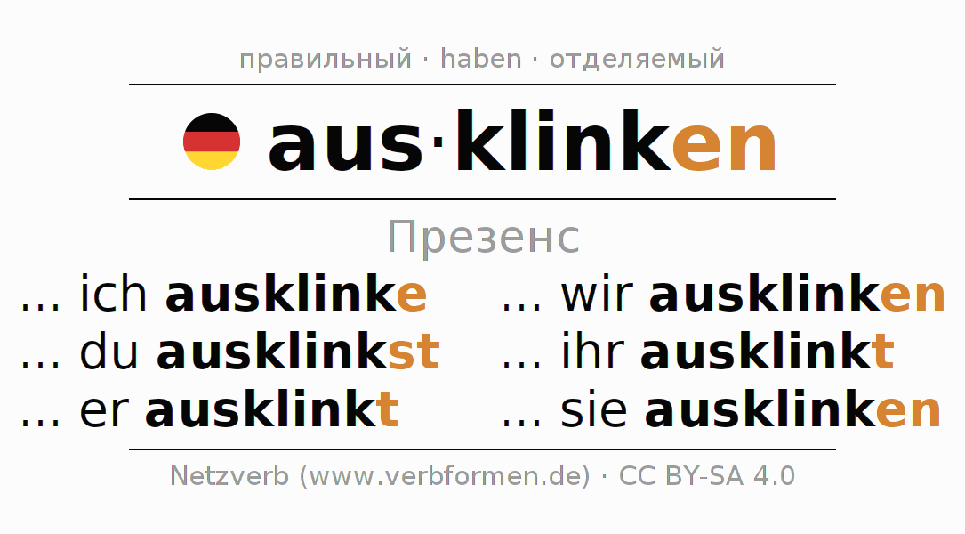 - ... ich ausklinke (1-е лицоЕдинственное число)