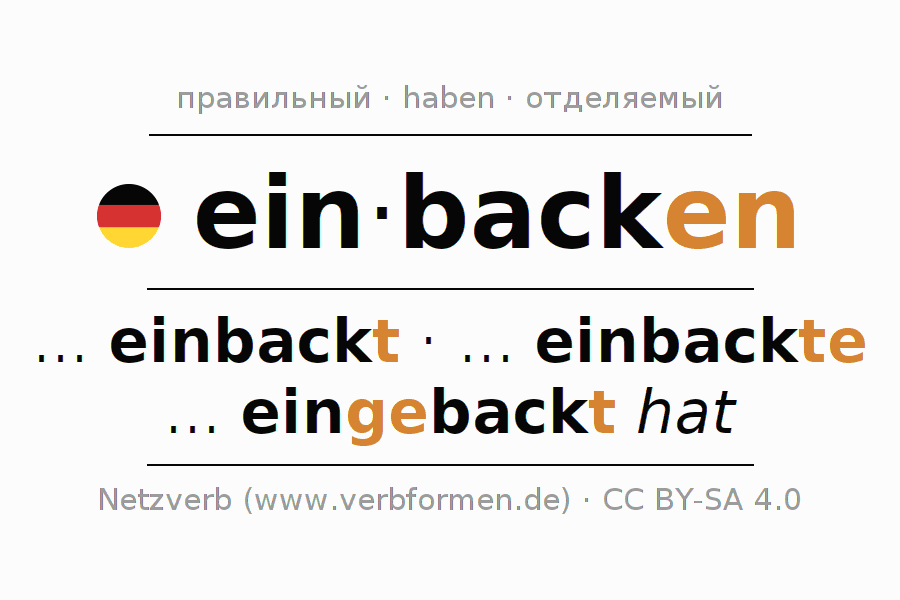 - ... ich einbacke (1-е лицоЕдинственное число)
