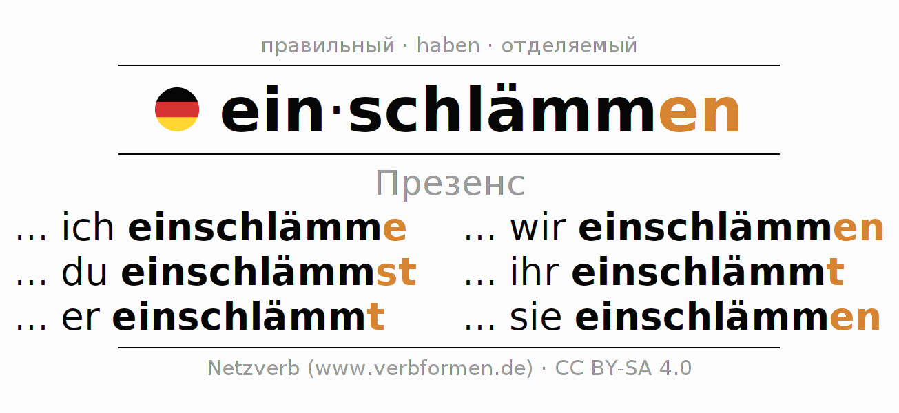 - Как спрягается einschlämmen в Презенс?