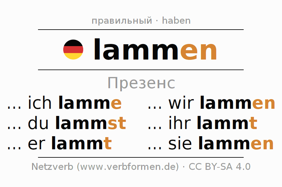 - ... ich lamme (1-е лицоЕдинственное число)