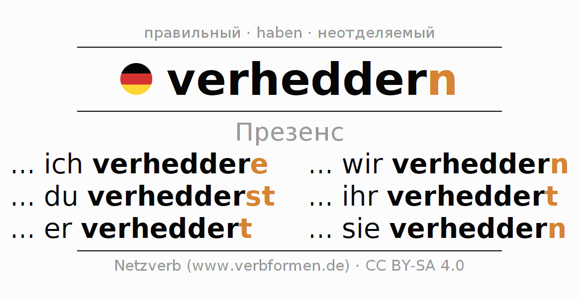 - Как спрягается verheddern в Презенс?