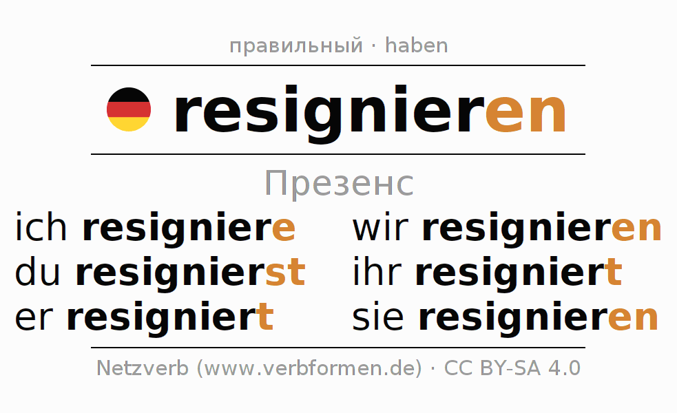 - Образование Презенс resignieren