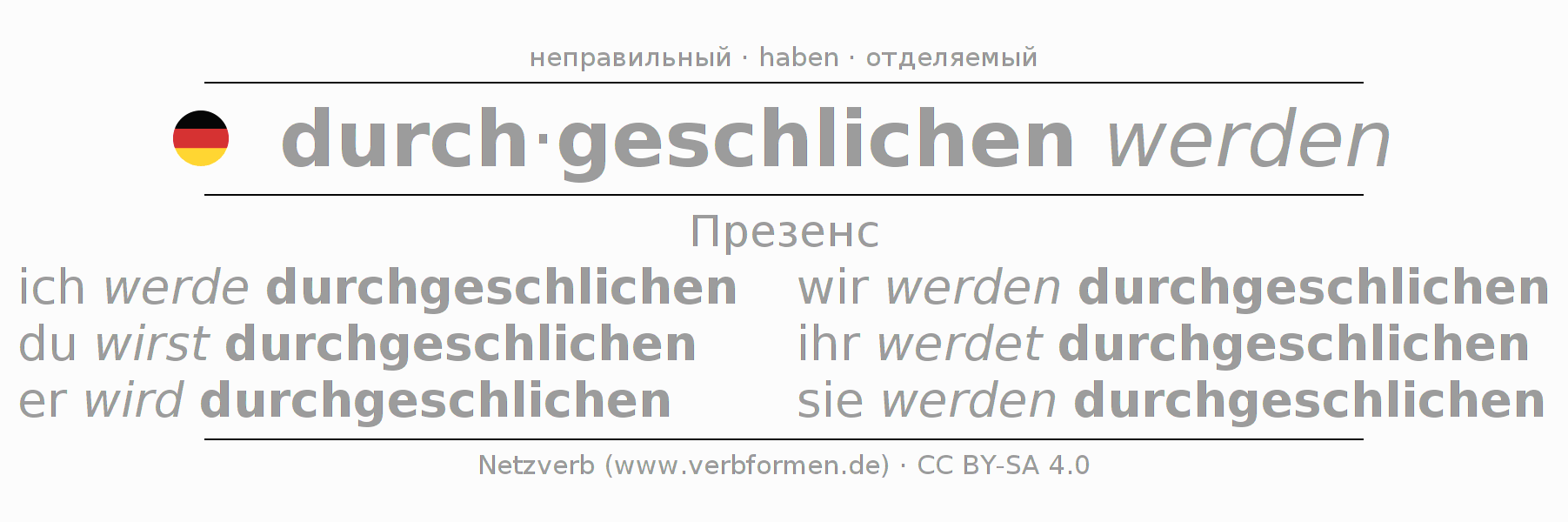 - ich werde durchgeschlichen (1-е лицоЕдинственное число)
