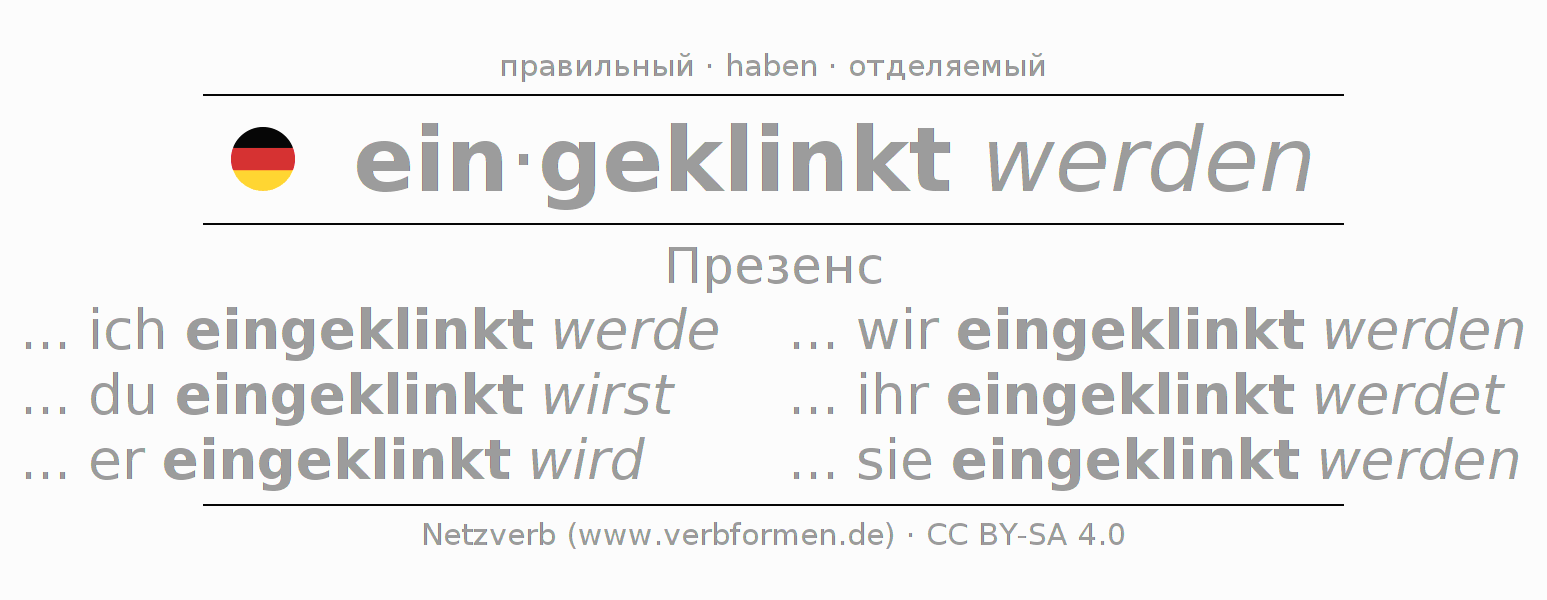 - Как спрягается einklinken в Инфинитив?