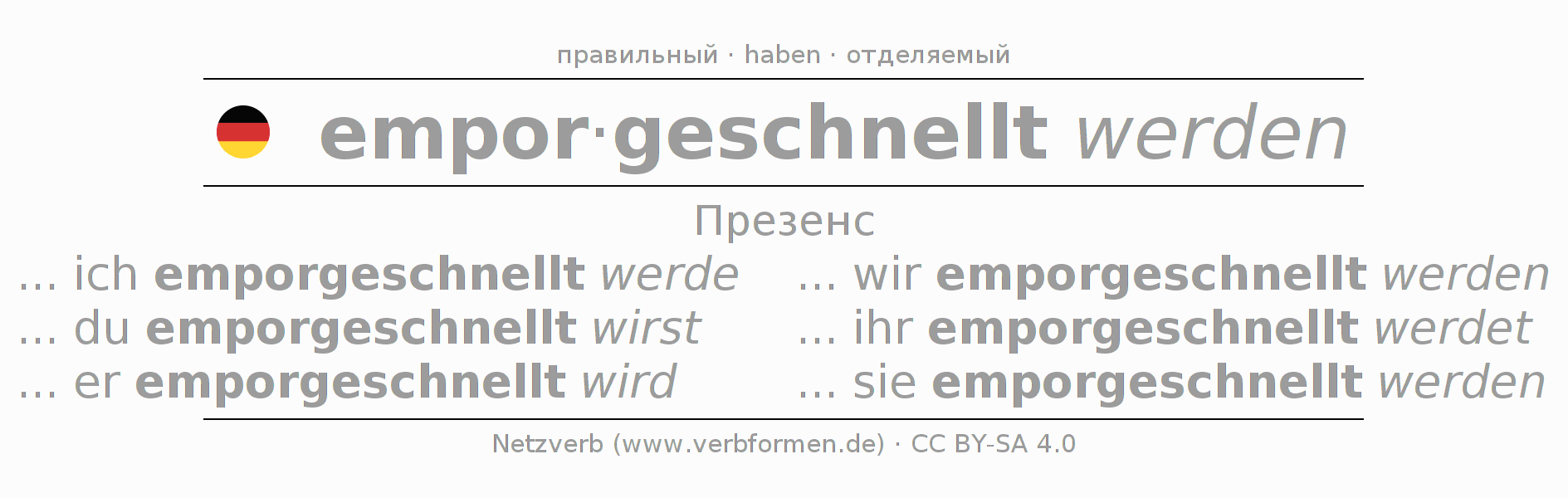 - Как спрягается emporschnellen в Презенс?