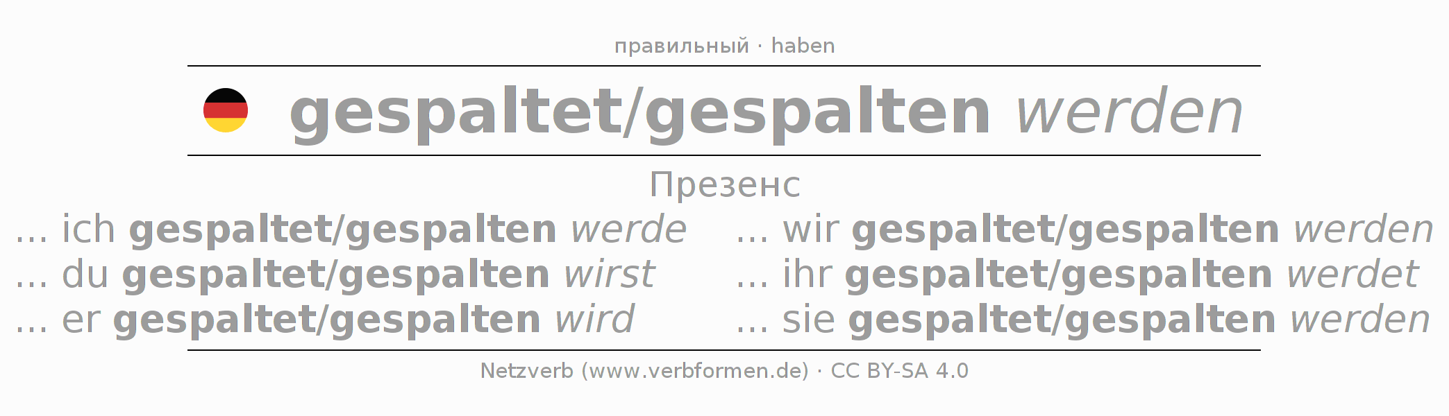 - ... ich gespaltet/gespalten werde (1-е лицоЕдинственное число)