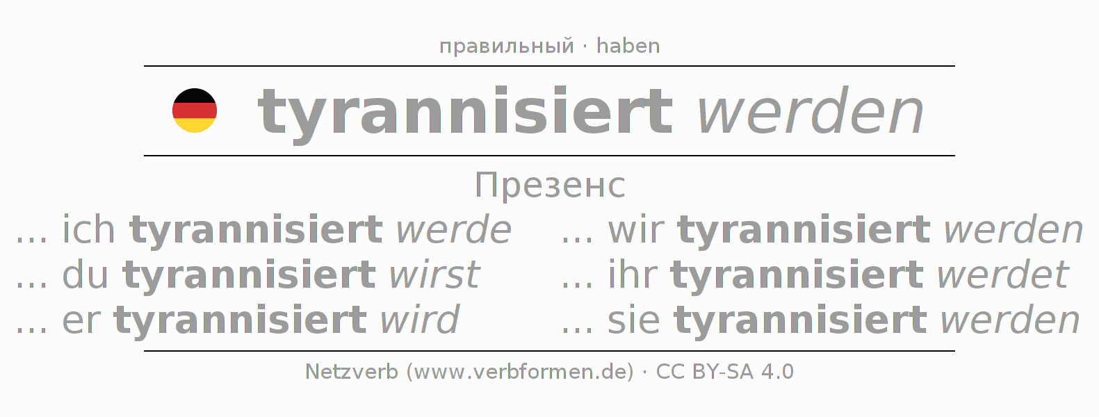 Этот глагол tyrannisieren полностью спрягается во всех лицах и числах Презенс Индикатив.