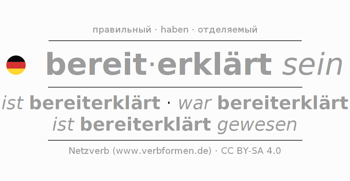 - ich bin bereiterklärt (1-е лицоЕдинственное число)