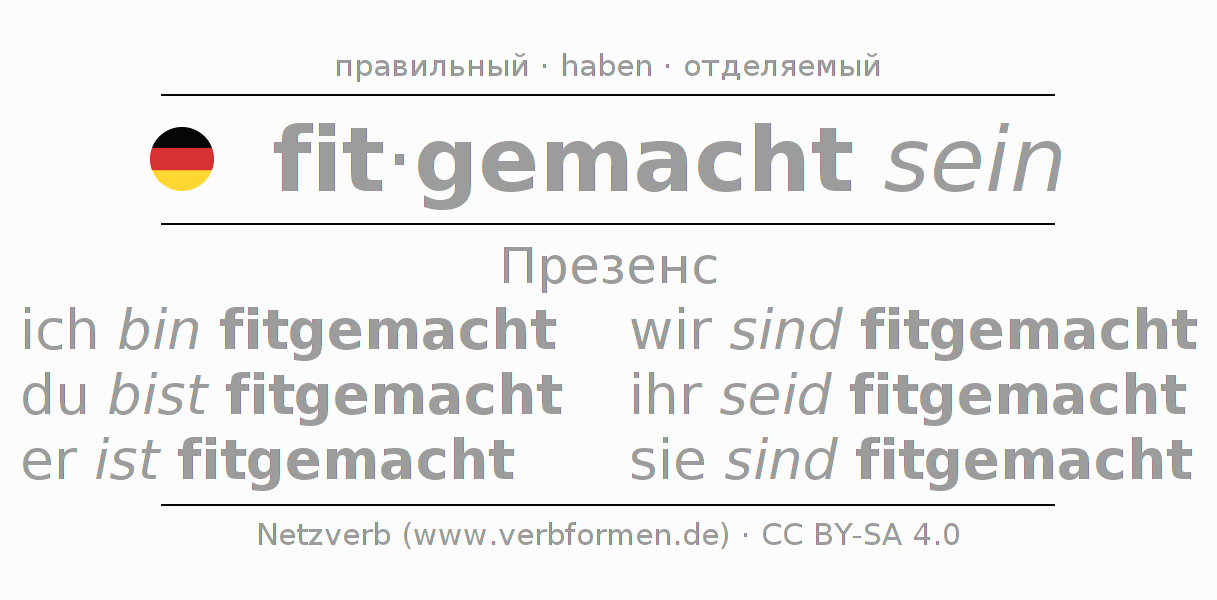 - ich bin fitgemacht (1-е лицоЕдинственное число)