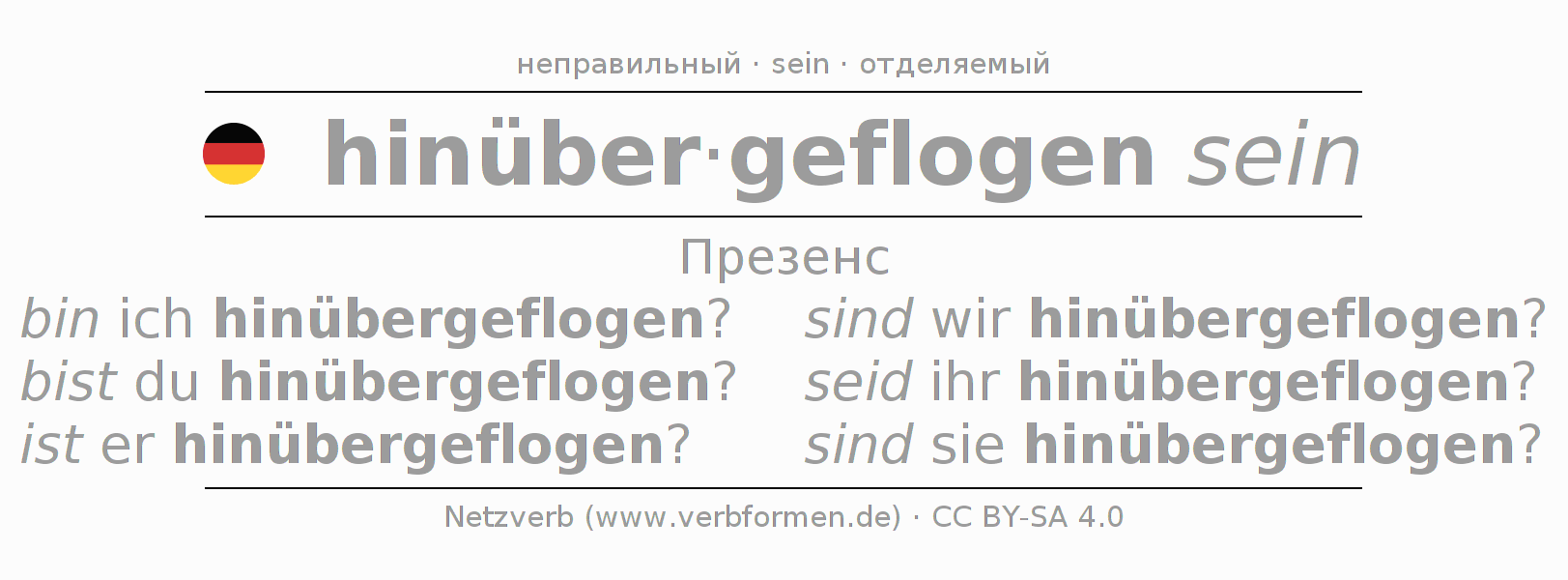 Глагольные формы в Презенс hinüberfliegen (ist)
