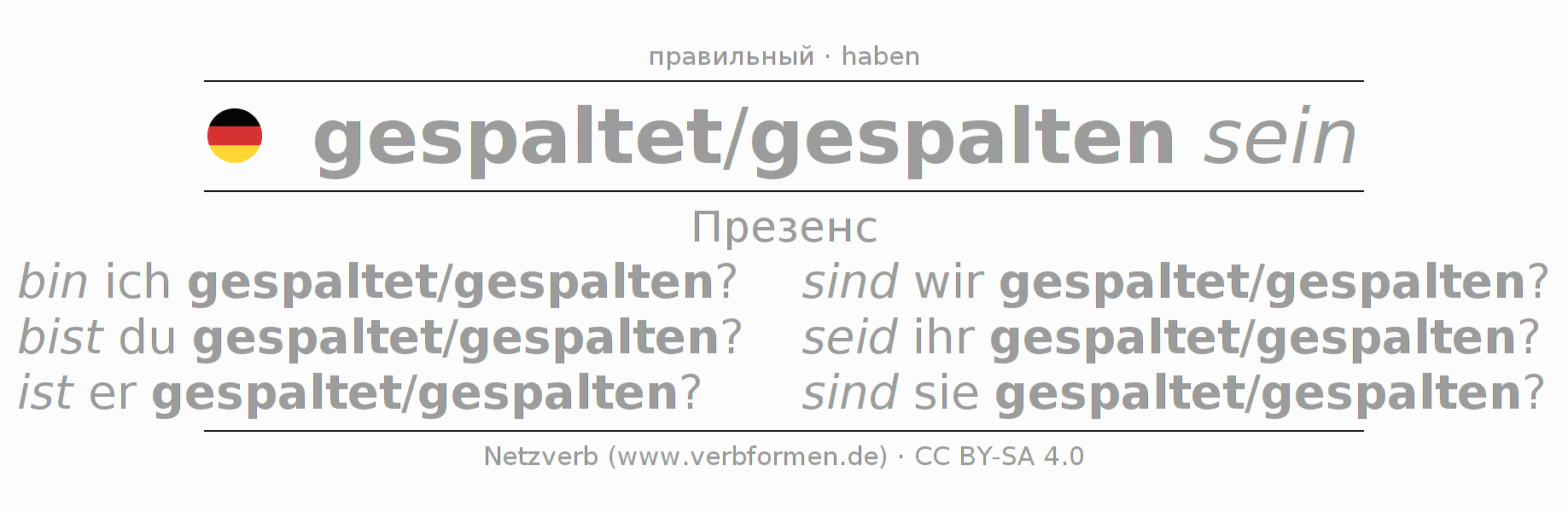 - bin ich gespaltet/gespalten? (1-е лицоЕдинственное число)