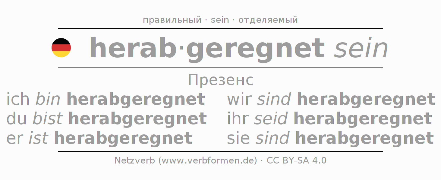 Этот глагол herabregnen полностью спрягается во всех лицах и числах Презенс Индикатив.