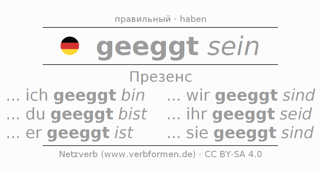 - ... ich geeggt bin (1-е лицоЕдинственное число)