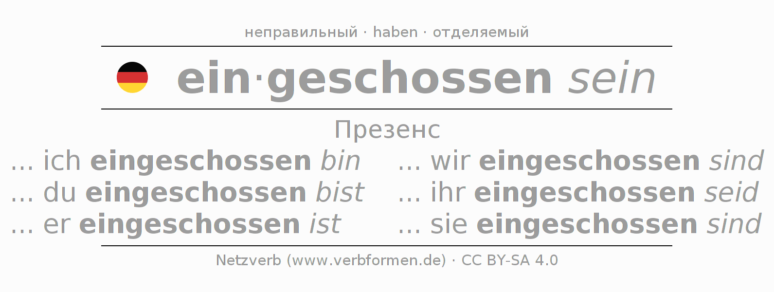 - ... ich eingeschossen bin (1-е лицоЕдинственное число)