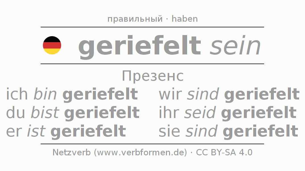 - ich bin geriefelt (1-е лицоЕдинственное число)