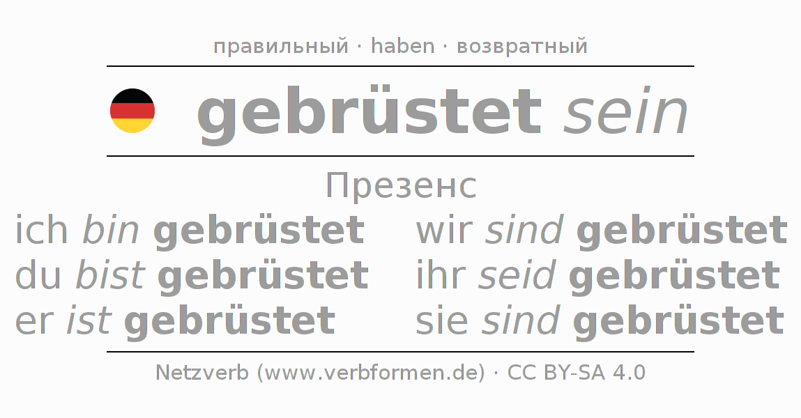 - ich bin gebrüstet (1-е лицоЕдинственное число)