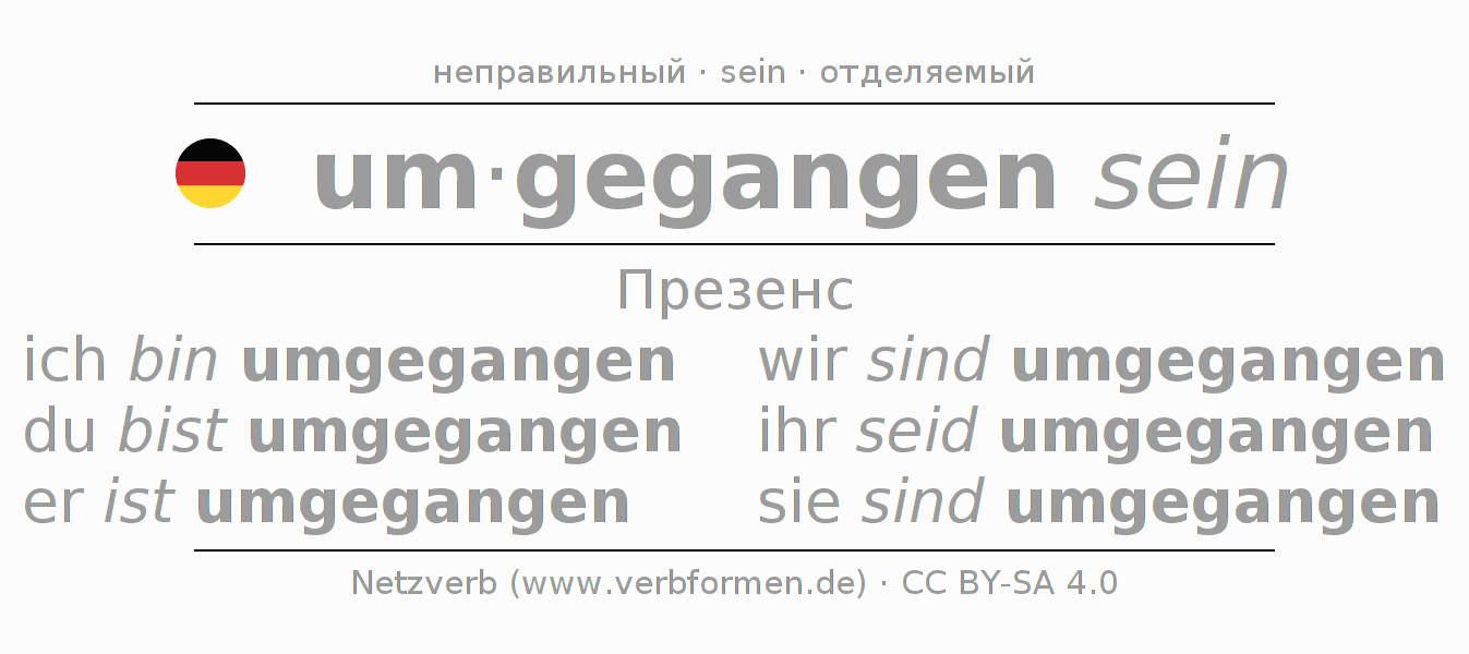 Глагольные формы в Презенс um-gehen (ist)