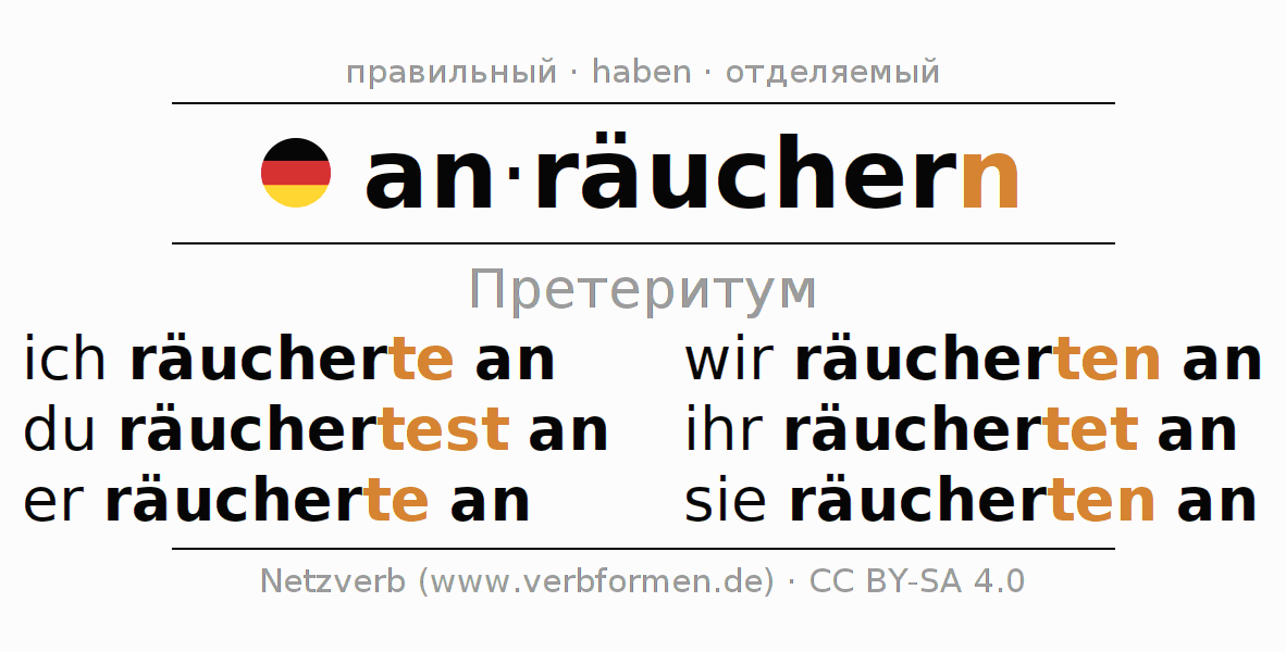 Этот глагол anräuchern полностью спрягается во всех лицах и числах Претеритум Индикатив.