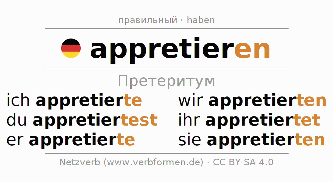 Этот глагол appretieren полностью спрягается во всех лицах и числах Претеритум Индикатив.