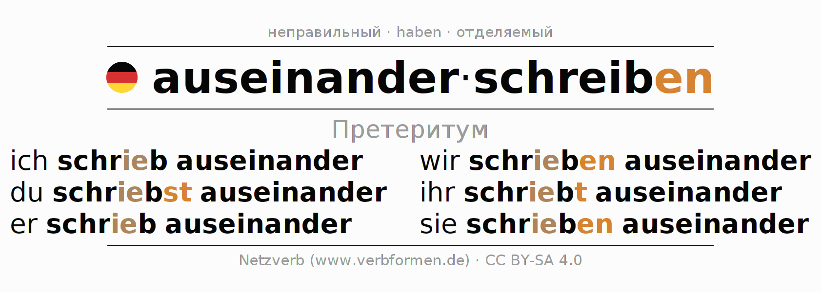 - ich schrieb auseinander (1-е лицоЕдинственное число)