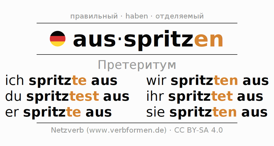 Этот глагол ausspritzen полностью спрягается во всех лицах и числах Претеритум Индикатив.