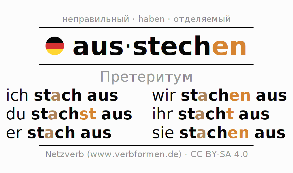 Этот глагол ausstechen полностью спрягается во всех лицах и числах Претеритум Индикатив.