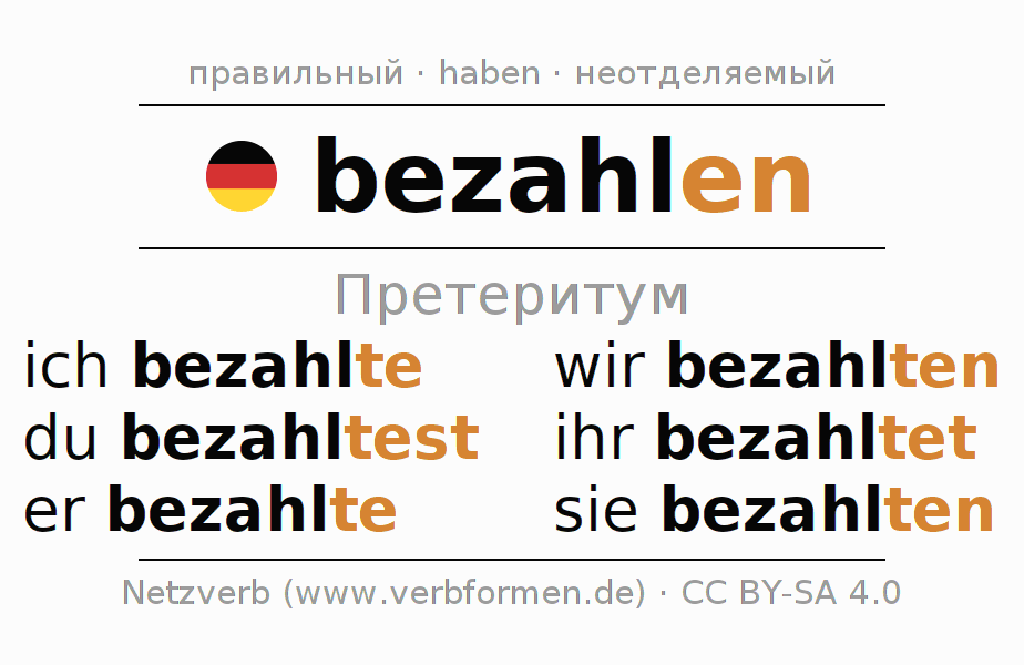 Этот глагол bezahlen полностью спрягается во всех лицах и числах Претеритум Индикатив.