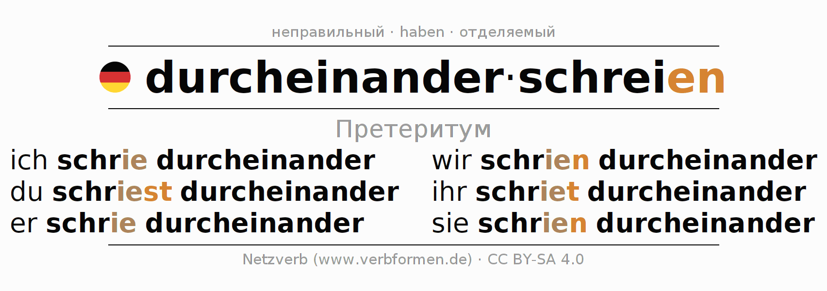 Этот глагол durcheinanderschreien полностью спрягается во всех лицах и числах Претеритум Индикатив.