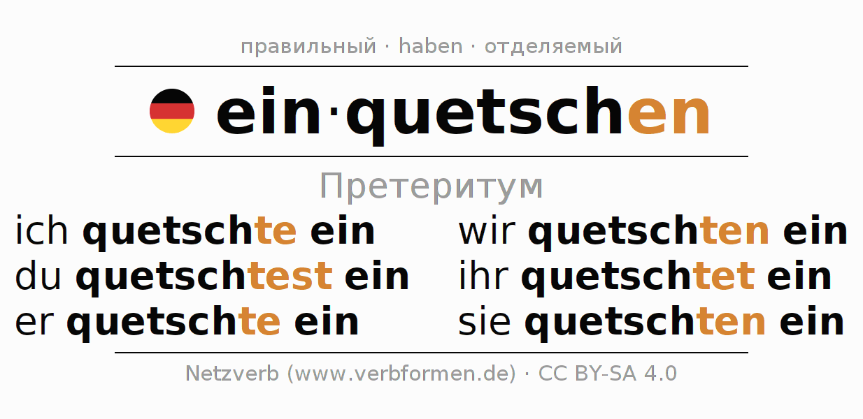 - Образование Претеритум einquetschen