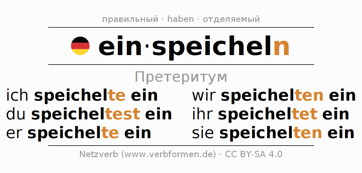 - Образование Претеритум einspeicheln