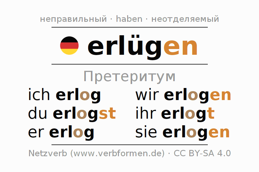 - Как спрягается erlügen в Претеритум?