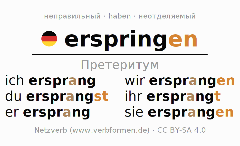 Этот глагол erspringen полностью спрягается во всех лицах и числах Претеритум Индикатив.
