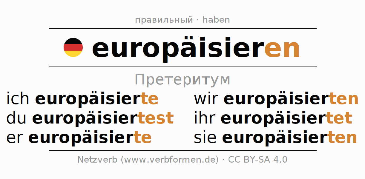 Этот глагол europäisieren полностью спрягается во всех лицах и числах Претеритум Индикатив.