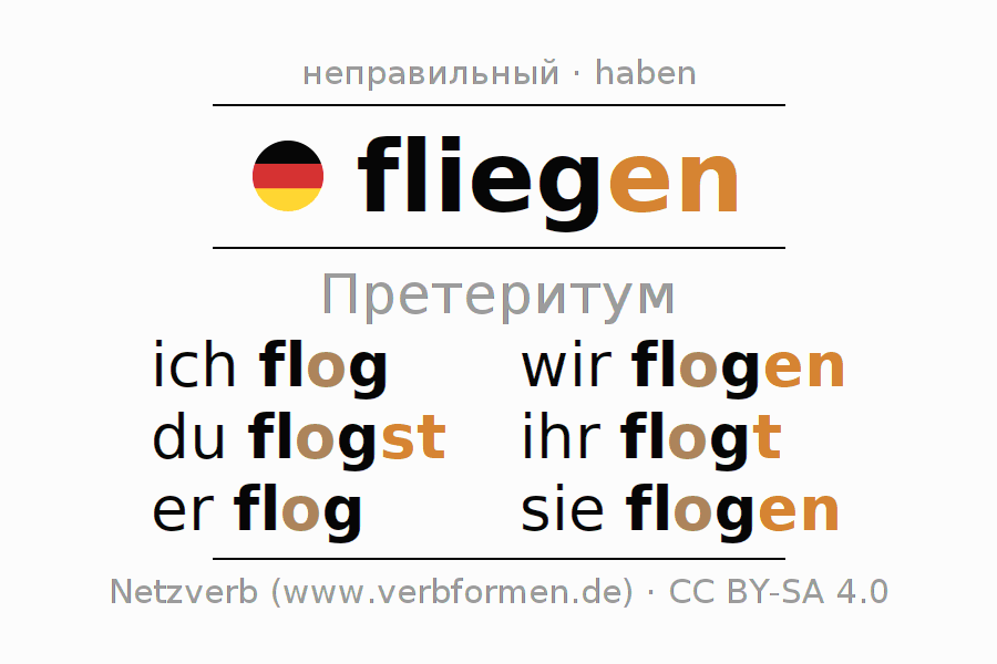 Глагольные формы в Претеритум fliegen