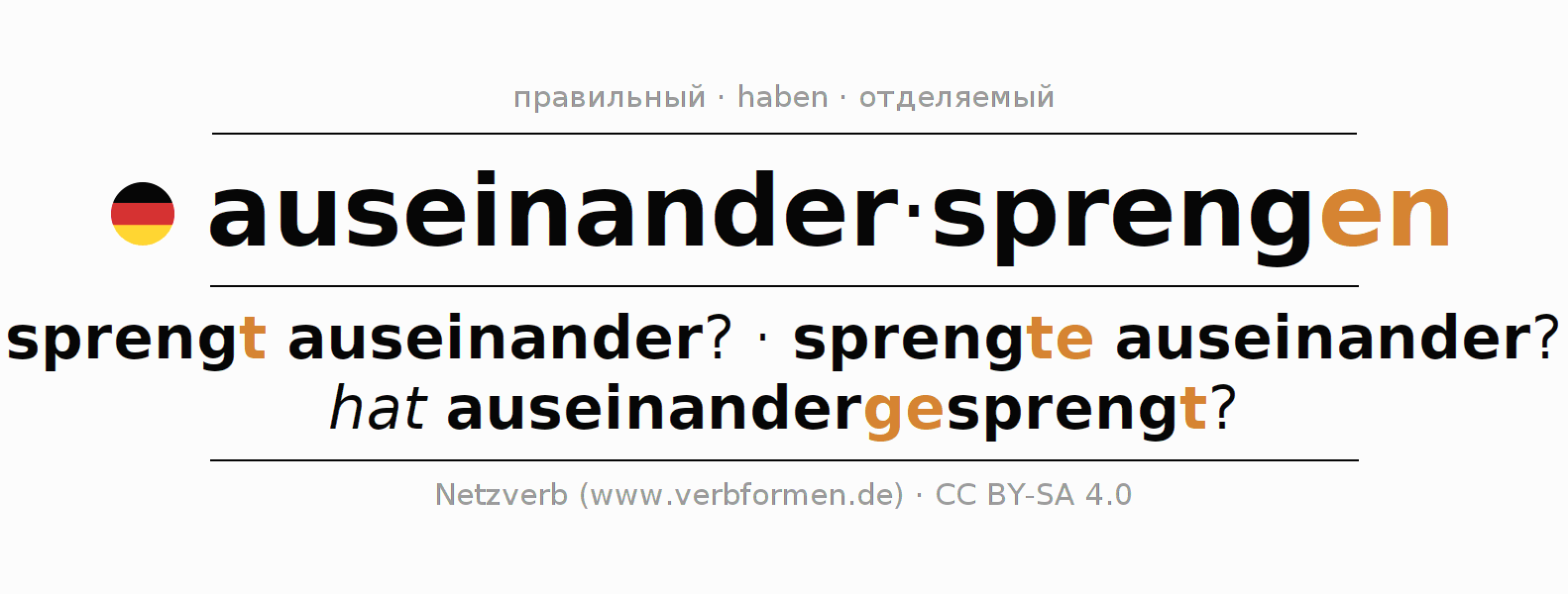 Этот глагол auseinandersprengen (hat) полностью спрягается во всех лицах и числах Претеритум Индикатив.