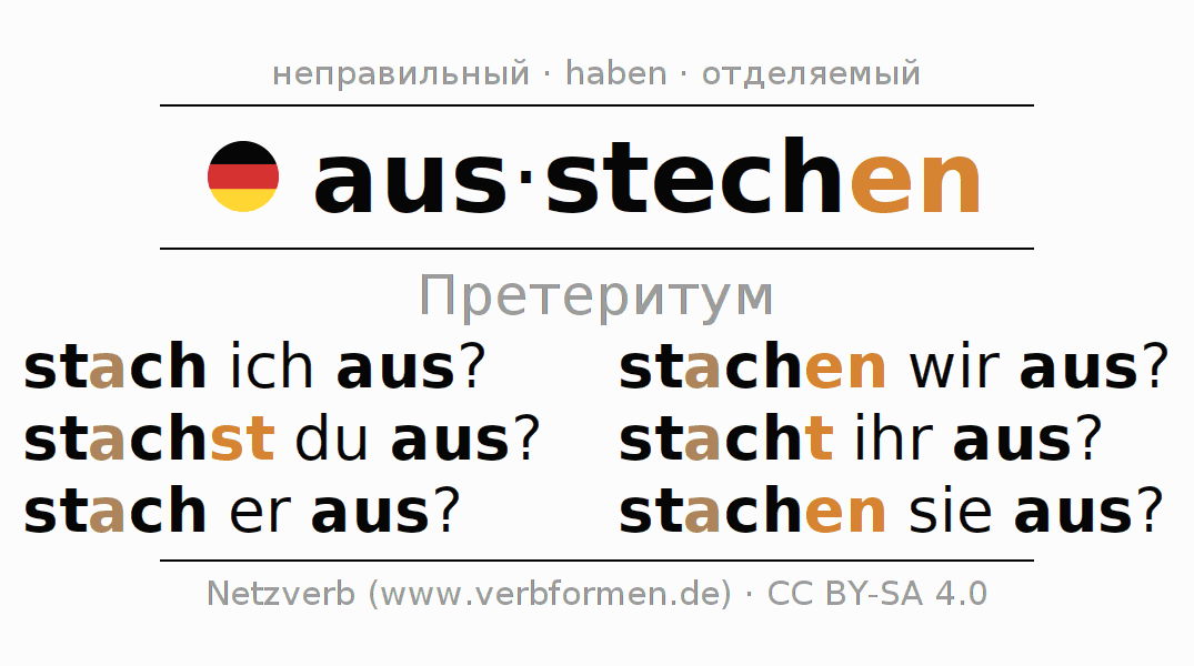 Этот глагол ausstechen полностью спрягается во всех лицах и числах Претеритум Индикатив.