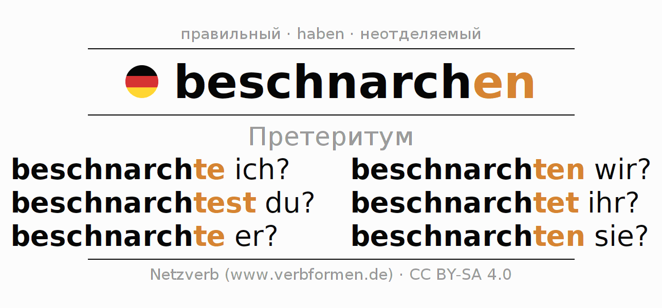 Этот глагол beschnarchen полностью спрягается во всех лицах и числах Претеритум Индикатив.