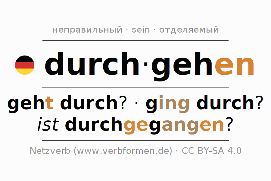 Спряжение durchgehen в Претеритум Индикатив Прошлое время Действительный залог (актив): ging ich durch?, gingst du durch?, ging er durch?, gingen wir durch?, gingt ihr durch?, gingen sie durch?.Образование этих форм происходит по определённым грамматическим правилам. Так же спрягаются простые глагольные формы durchgehen в Претеритум. Kомментарии ☆