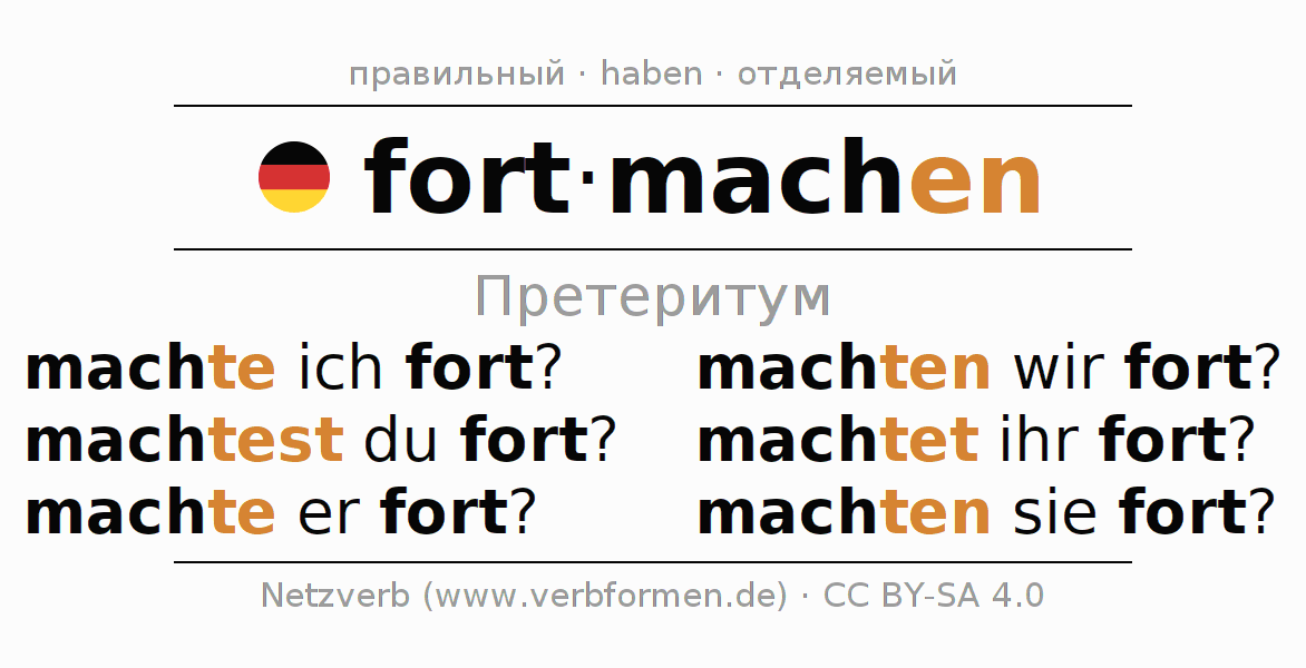 - Образование Претеритум fortmachen
