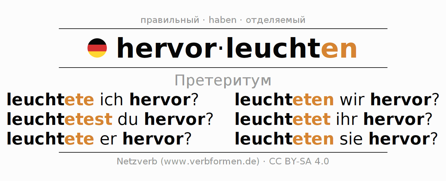Этот глагол hervorleuchten полностью спрягается во всех лицах и числах Претеритум Индикатив.