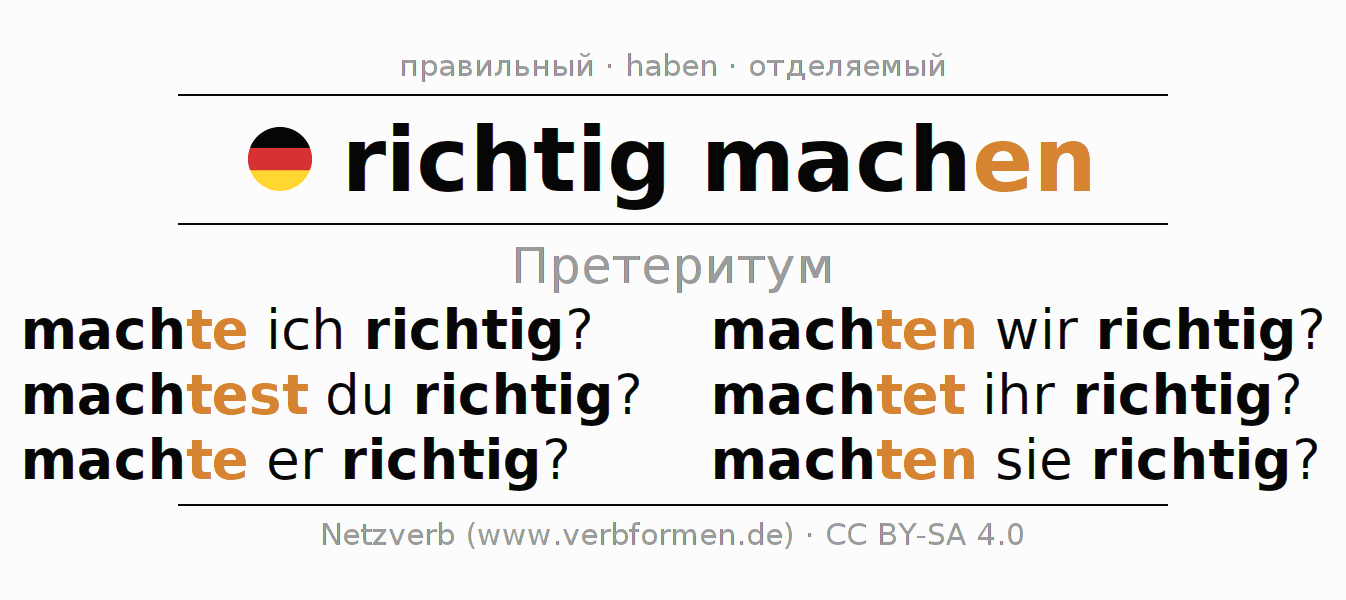 Глагольные формы в Претеритум richtigmachen