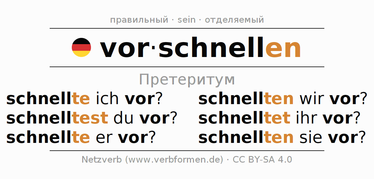 - schnellte ich vor? (1-е лицоЕдинственное число)