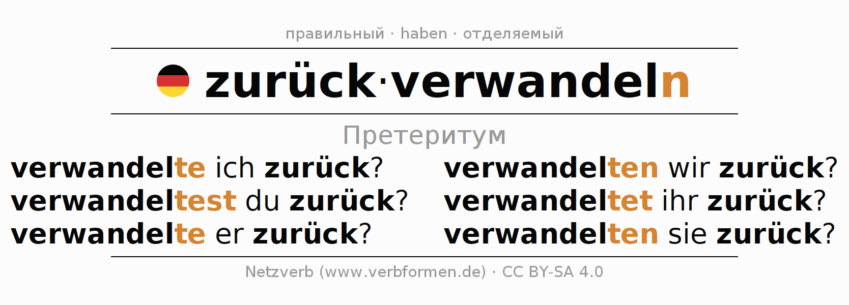 - verwandelte ich zurück? (1-е лицоЕдинственное число)