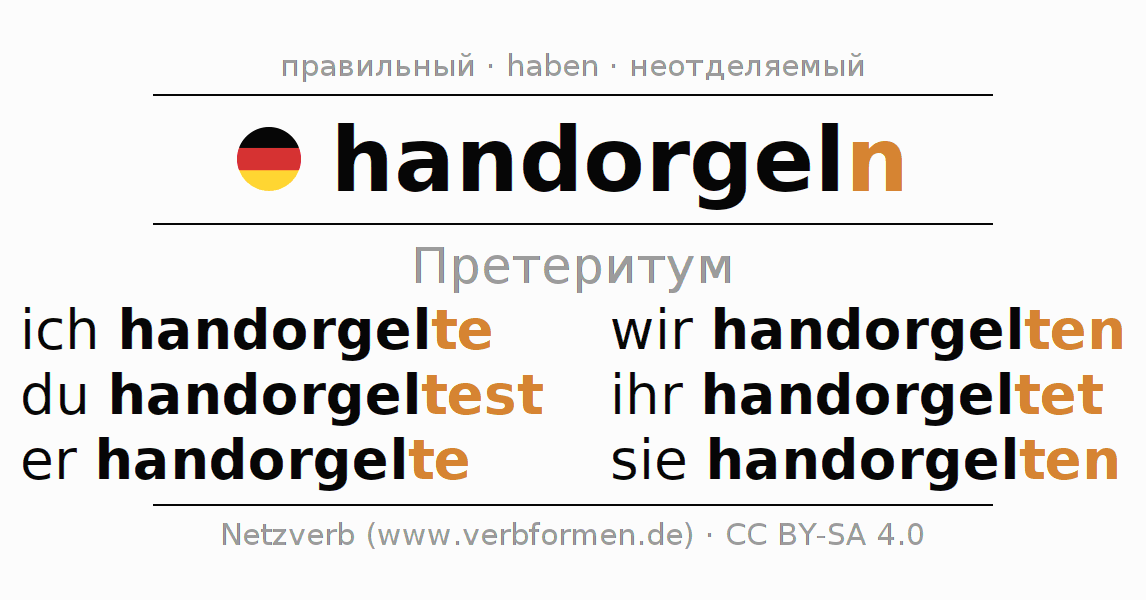 Этот глагол handorgeln полностью спрягается во всех лицах и числах Претеритум Индикатив.