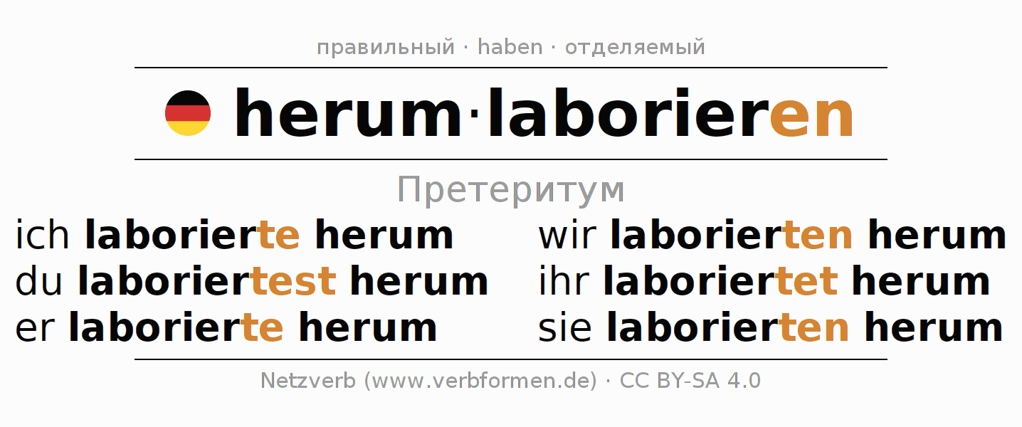 - ich laborierte herum (1-е лицоЕдинственное число)