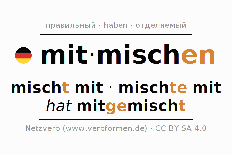 Этот глагол mitmischen полностью спрягается во всех лицах и числах Претеритум Индикатив.
