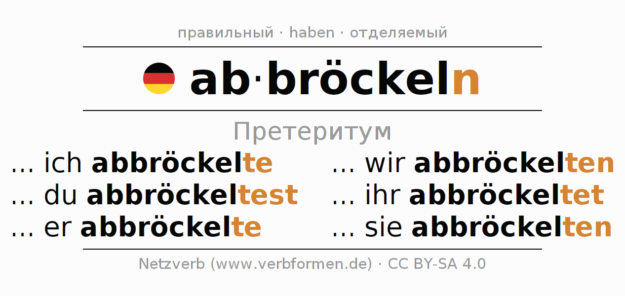 - Как спрягается abbröckeln в Претеритум?
