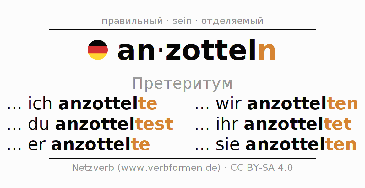 - ... ich anzottelte (1-е лицоЕдинственное число)