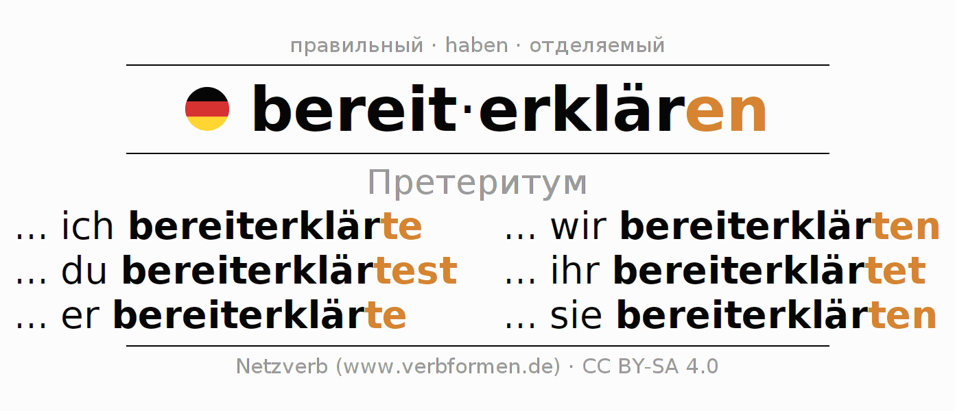 - ... ich bereiterklärte (1-е лицоЕдинственное число)