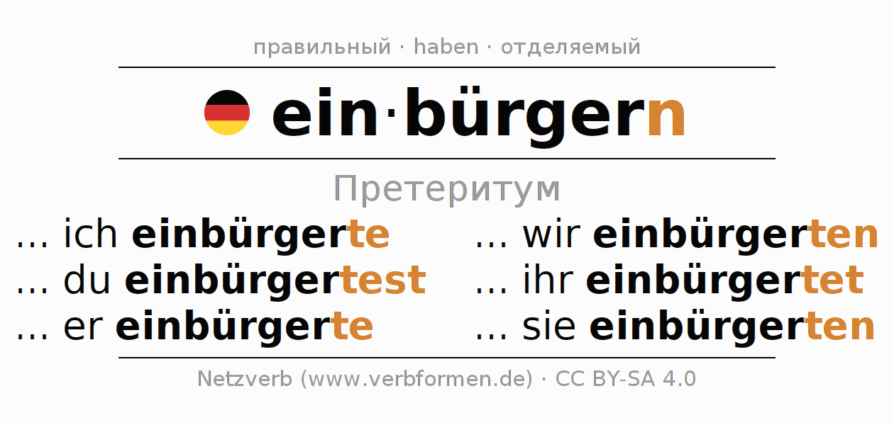Этот глагол einbürgern полностью спрягается во всех лицах и числах Претеритум Индикатив.